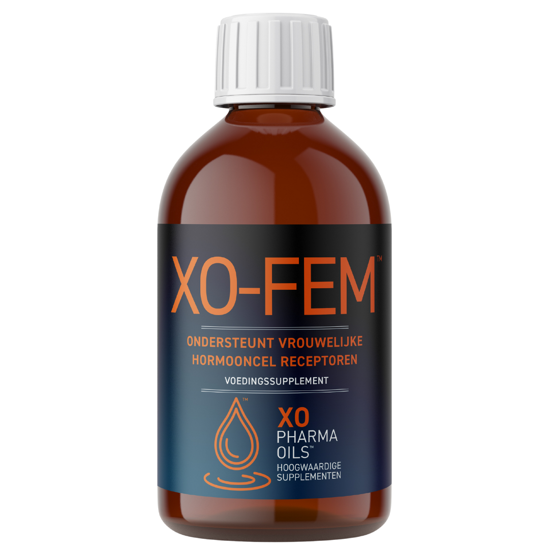XO-FEM is een 100% ongeraffineerde vlaszaadolie met een zeer hoge hoeveelheid aan: Lignanen, Isoflavonen en Saponinen. Deze actieve ingrediënten zijn krachtige antioxidanten met specifieke werking op de hormooncel receptoren. De XO-FEM vetzuren zijn een belangrijke voorwaarde voor de opbouw van ons hormoonstelsel en voor een regelmatige menstruatiecyclus. Daarnaast worden deze vetzuren in verband gebracht met een optimale hersenfunctie, gezond hart, minder ontstekingsreacties en een beter humeur.